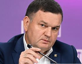 "Круглый стол" Экспертного института социальных исследований на тему "Месяц до выборов: партийная активность и конкуренция" в пресс-центре МИЦ "Известия". Заместитель председателя комитета Государственной думы России по развитию гражданского общества, вопросам общественных и религиозных объединений Сергей Обухов во время "круглого стола".