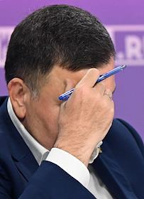 Заседание "круглого стола" Экспертного института социальных исследований (ЭИСИ) на тему: "Месяц до выборов: партийная активность и конкуренция" в пресс-центре МИЦ "Известия". Первый заместитель председателя комиссии Общественной палаты России по общественной экспертизе законопроектов и иных нормативных актов, политолог Александр Асафов после "круглого стола".