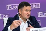 Заседание "круглого стола" Экспертного института социальных исследований (ЭИСИ) на тему: "Месяц до выборов: партийная активность и конкуренция" в пресс-центре МИЦ "Известия". Заместитель председателя комитета Государственной думы России по развитию гражданского общества, вопросам общественных и религиозных объединений Сергей Обухов во время "круглого стола".