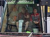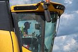 Уборочная кампания в Лаишевском районе Республики Татарстан. Жанровая фотография. Комбайнер во время уборки урожая зерновых на полях ООО "СОВАТЕХ".