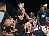 XXXIII Летние Олимпийские игры в Париже. Арена "Берси". Баскетбол. Мужчины. Полуфинал. Матч между сборными командами США и Сербии. Главный тренер сборной США по баскетболу Стив Керр (в центре) во время матча.
