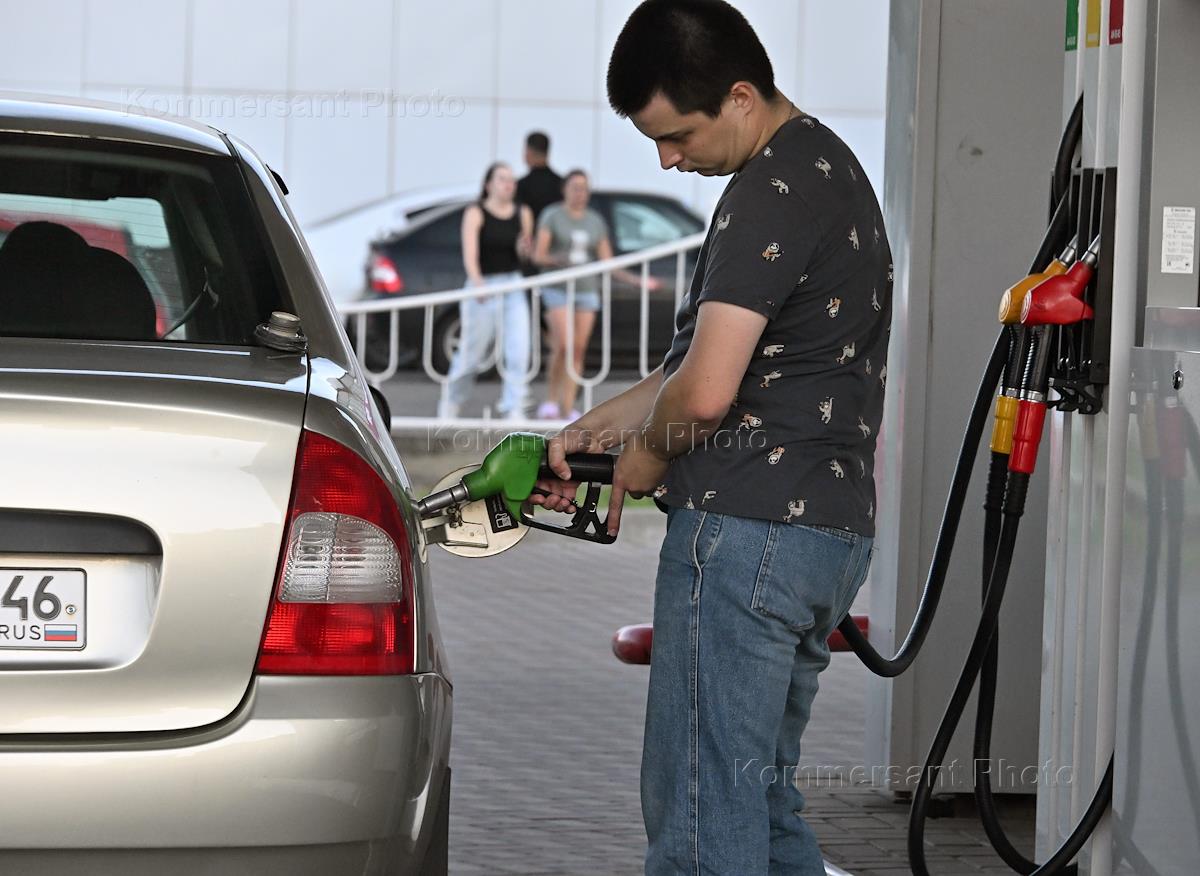 Ситуация в Курской области после обстрела ВСУ. Молодой мужчина во время заправки легкового автомобиля на АЗС.