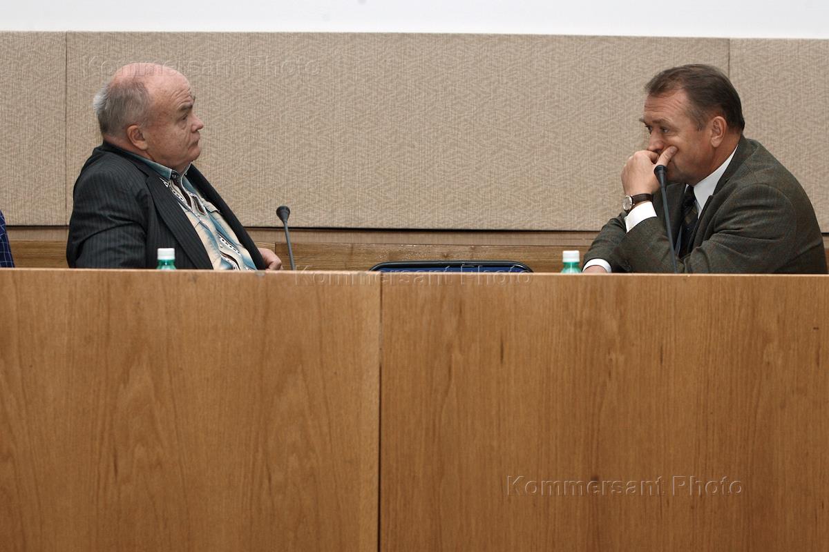 Russian Public Chamber Secretary, academician Yevgeny Velikhov, left, and Russian Public Chamber member, Russian Trade and Industrial Chamber Vice President, right, attend round table meeting devoted to Russian Public Chamber work analisys and further strategy.