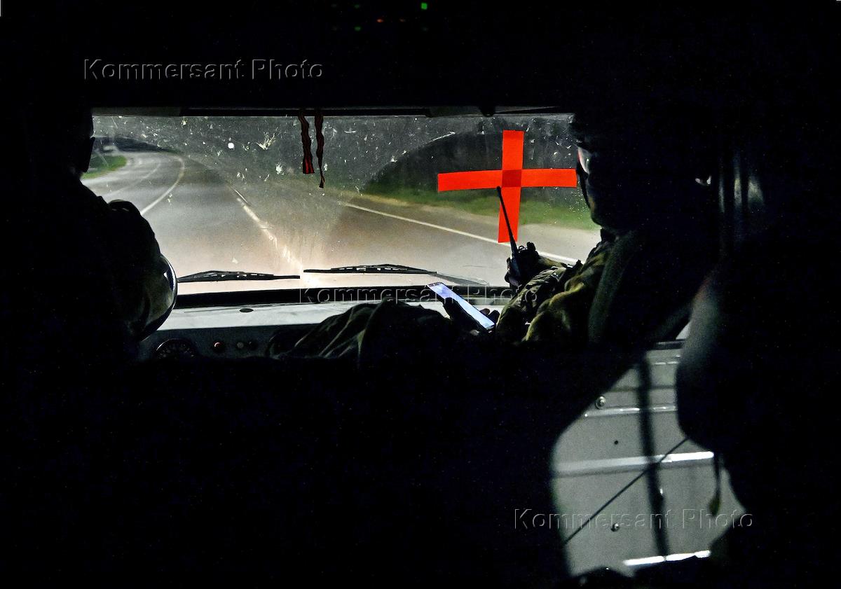 Ситуация в Курской области после обстрела ВСУ. Сотрудники СМИ в салоне автомобиля с Красным крестом.