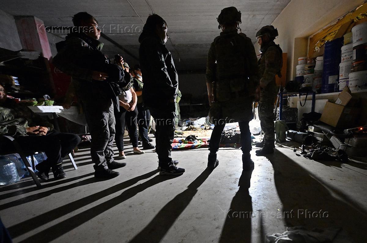 Ситуация в Курской области после обстрела ВСУ. Жанровая фотография. Военные в камуфляжной форме.