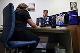 Пресс-тур в Тюменскую областную клиническую больницу N1, в рамках масштабного пресс-тура, приуроченного к 80-летнему юбилею Тюменской области. Жанровая фотография. Регистратура экстренной госпитализации пациентов.