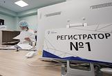 Пресс-тур в Тюменскую областную клиническую больницу N1, в рамках масштабного пресс-тура, приуроченного к 80-летнему юбилею Тюменской области. Жанровая фотография. Регистратура.