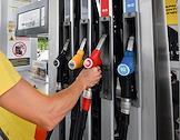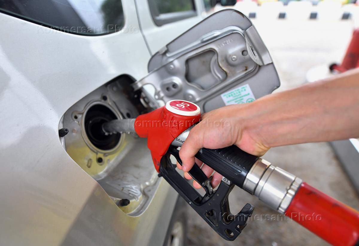 Жанровая фотография. Автозаправочная станция "Роснефть". Водитель заправляет бензином топливный бак легкового автомобиля.