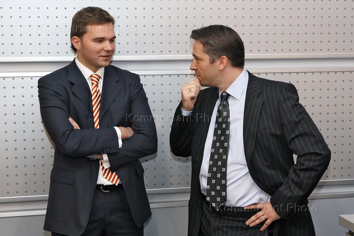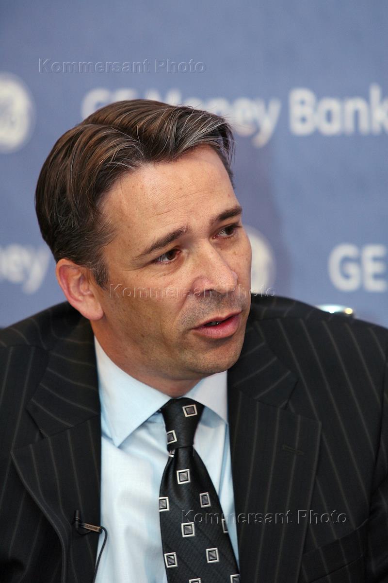 DeltaBank President Richard Gaskin, right, and DeltaBank Financial Director Andrey Larkin, left, attend press conference devoted to GE Money Bank brand, which replace DeltaBank in October, 2006.