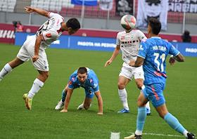 Фонбет - Кубок России по футболу 2024/25. Матч между командами "Рубин" (Казань) - "Зенит" (Санкт-Петербург) на стадионе "Ак Барс Арена". Игрок команды "Зенит" Вильсон Изидор (слева) и игрок команды "Рубин" Игор Вуячич (справа) во время матча.