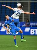 Фонбет - Кубок России по футболу 2024/25. Матч между командами "Динамо" (Москва) - "Динамо" (Махачкала) на стадионе "ВТБ Арена". Игрок команды "Динамо" Лука Гагнидзе (слева) и игрок команды "Динамо Мх" Никита Глушков (справа) во время матча.