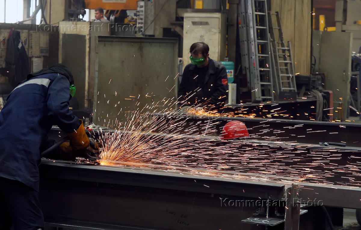Пресс-тур на Первую производственную площадку АО "СтальМост" в поселке Винзили в Тюменской области. Рабочие в цехе.