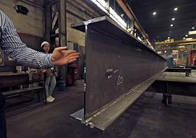 Пресс-тур на Первую производственную площадку АО "СтальМост" в поселке Винзили в Тюменской области. Рабочие в цехе.
