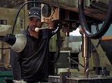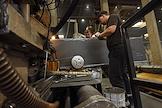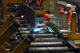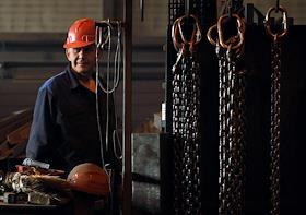 Пресс-тур на Первую производственную площадку АО "СтальМост" в поселке Винзили в Тюменской области. Рабочий в цехе.
