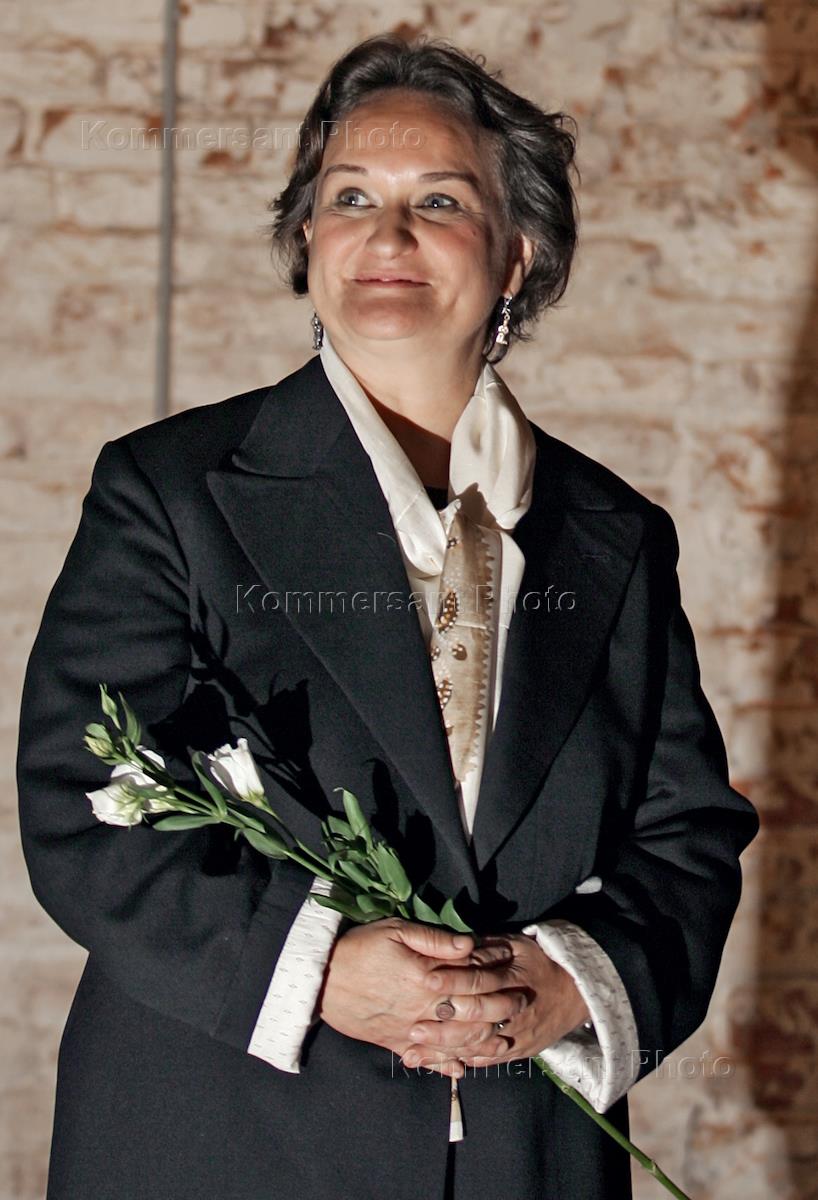 Художница Ирина Затуловская на церемонии открытия своей выставки "И.З.Классика". Русские писатели и поэты в живописных объектах" в Музей архитектуры им. Щусева (МУАРе).