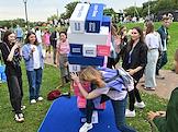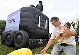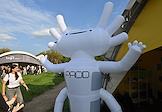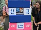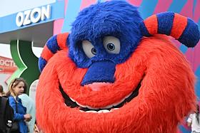 Семейный фестиваль для опытных ИТ-специалистов "ИТ-пикник" в музее-заповеднике "Коломенское". Жанровая фотография. Маскот онлайн-ретейлерв Ozon домовой, эксперт по товарам из мира людей- Ози на фестивале.