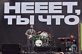 Семейный фестиваль для опытных ИТ-специалистов "ИТ-пикник" в музее-заповеднике "Коломенское". Жанровая фотография. Группа "Неет, ты что" во время концертного выступления.