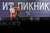 Семейный фестиваль для опытных ИТ-специалистов "ИТ-пикник" в музее-заповеднике "Коломенское". Жанровая фотография. Музыканты на сцене перед началом выступления певца Леонида Агутина.