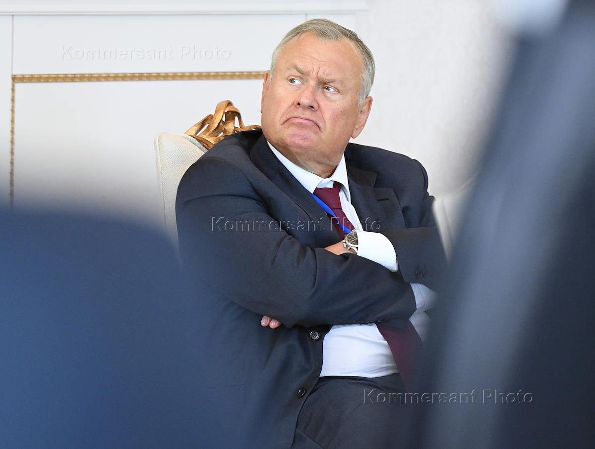 Working trip of Russian President Vladimir Putin to Baku. President, Chairman of the Board of PJSC VTB Bank Andrey Kostin during Russian-Azerbaijani negotiations in an expanded format at the Zagulba residence.