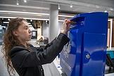VII Межрегиональный форум по государственно-частному партнерству в ИТ-парке им. Башира Рамеева. Жанровая фотография. Девушка у почтового ящика "Почты России".