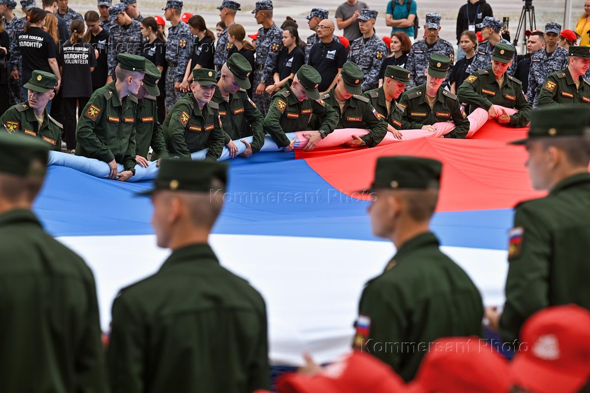 Празднование Дня Государственного флага России на площади перед Музеем Победы на Поклонной горе.