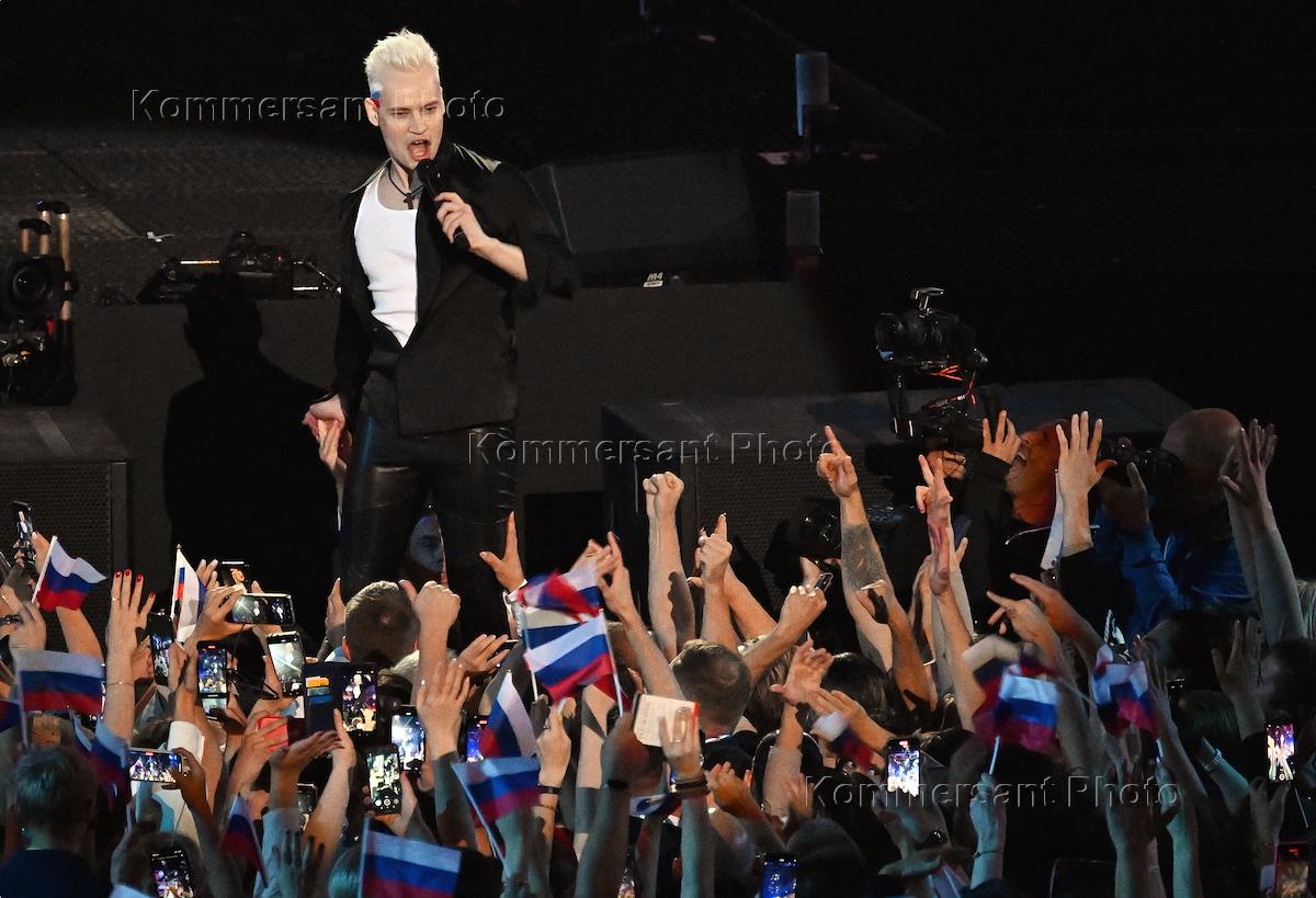 Празднование Дня Государственного флага России. Концерт певца Shaman (Ярослав Дронов) на Красной площади с новой сольной программой "Победа". Певец SHAMAN (Ярослав Дронов) на концерте.
