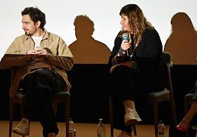 XII Ежегодный российский кинофестиваль короткометражного кино "Короче". Образовательная программа "Лаборатория "Короче"". Кинокритик Никита Карцев (слева) и режиссер, сценарист Наталья Мещанинова (справа) во время программы.