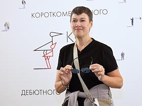 XII Ежегодный российский кинофестиваль короткометражного кино "Короче". Показ фильма "Чистый лист". Продюсер, киновед Наталья Мокрицкая перед началом показа.