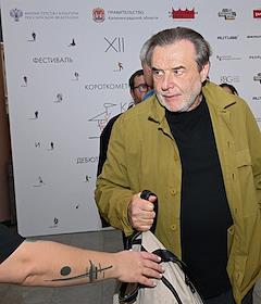 XII Ежегодный российский кинофестиваль короткометражного кино "Короче". Показ фильма "Чистый лист". Актер и продюсер Александр Робак перед началом показа.