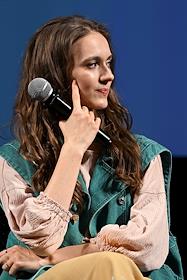 XII Ежегодный российский кинофестиваль короткометражного кино "Короче". Показ фильма "Точка опоры". Актриса Полина Маликова перед началом показа.