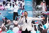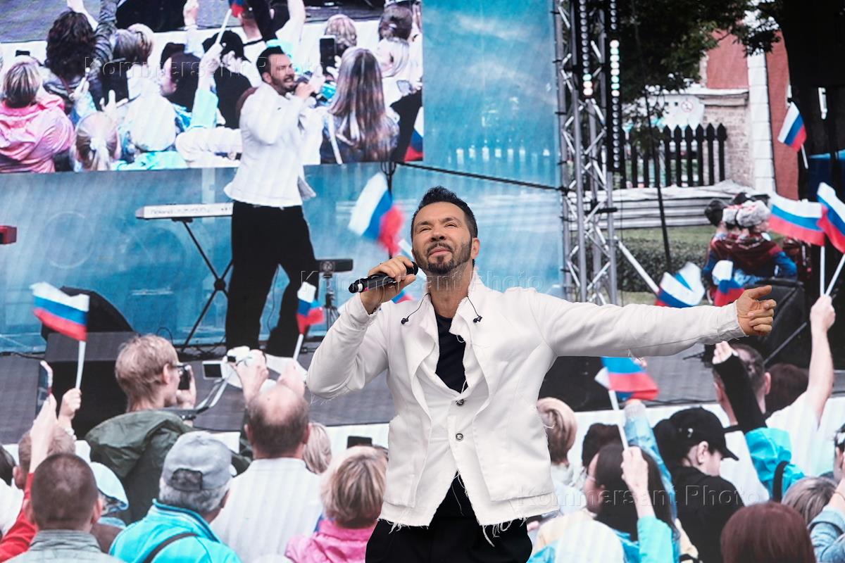 Празднование Дня Государственного Флага России в Петропавловской крепости. Концерт в честь Дня Флага России. Певец Денис Клявер во время выступления на концерте.