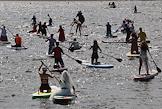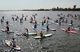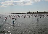 Фестиваль "Ростов-папа SUP" на гребном канале "Дон". Участники перед началом гонки за кубок Южного Федерального округа (ЮФО) по сап-серфингу.