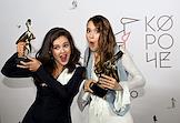 XII Ежегодный российский кинофестиваль короткометражного кино "Короче". Церемония закрытия в Центральном парке. Режиссер Полина Кондратьева (слева) и актриса Зинаида Ястржембская на церемонии.