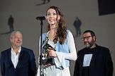XII Ежегодный российский кинофестиваль короткометражного кино "Короче". Церемония закрытия в Центральном парке. Режиссер Мария Салюкова на церемонии.