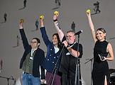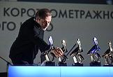 XII Ежегодный российский кинофестиваль короткометражного кино "Короче". Церемония закрытия. Режиссер Никита Троценко (второй справа) на церемонии.