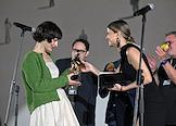 XII Ежегодный российский кинофестиваль короткометражного кино "Короче". Церемония закрытия в Центральном парке. Режиссер Полина Кондратьева (в центре) на церемонии.