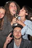 XII Ежегодный российский кинофестиваль короткометражного кино "Короче". Церемония закрытия в Центральном парке. Слева направо: актриса Ирина Розанова, режиссер, директор студии "Рок" Алексей Учитель, режиссер Александр Котт, актриса Елизавета Боярская и продюсер, актер Александр Робак на церемонии.