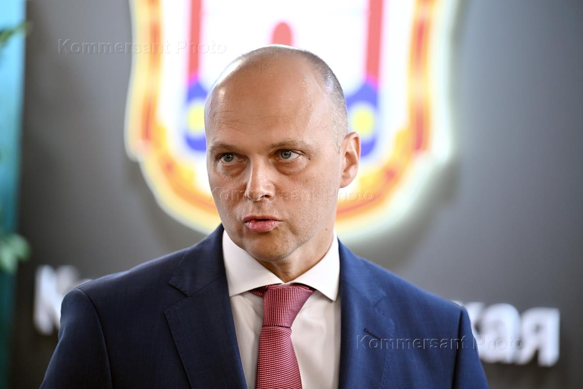 Рабочая поездка председателя правительства Михаила Мишустина в Калугу. Форум "Развитие малых городов и исторических поселений". Временно исполняющий обязанности губернатора Калининградской области Алексей Беспрозванных во время осмотра стенда Челябинской области на выставки форума.