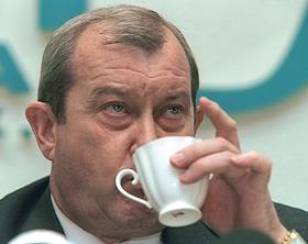 Полномочный представитель Президента России в Дальневосточном Федеральном округе Константин Пуликовский пьет чай во время пресс-конференции в агентстве "Интерфакс".