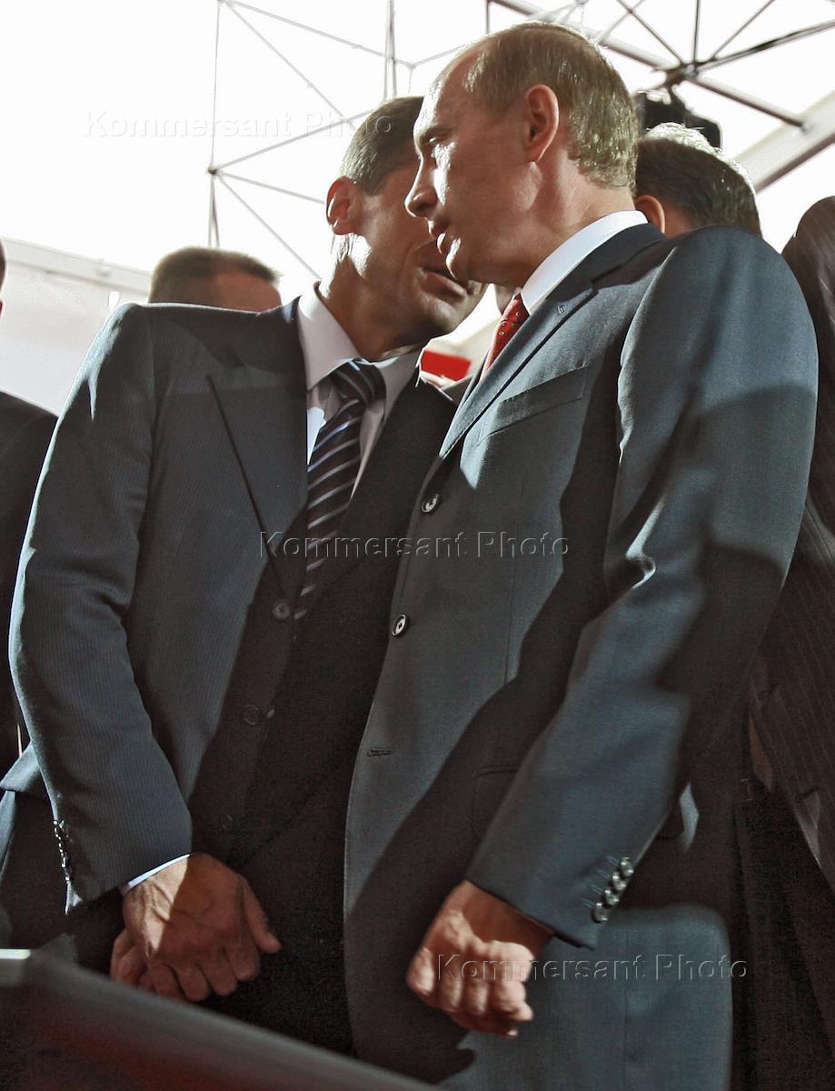 Russian prime minister Vladimir Putin (at the left) and Russian President's Plenipotentiary in the Southern Federal District Dmitry Kozak on solemn ceremony of opening of V International economic forum "Kuban 2006".