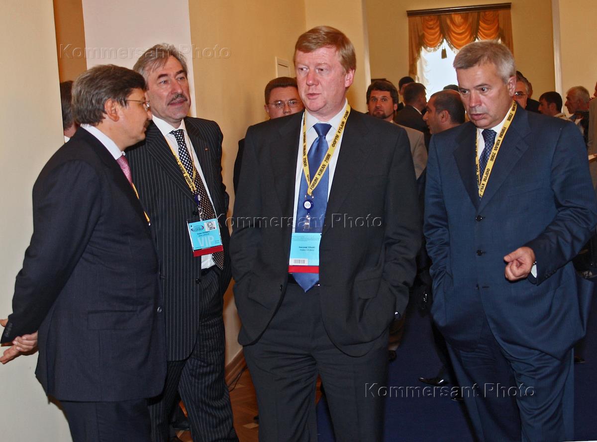 Russian Investors Rights Protection Association Chairman Sergey Generalov, left, RAO UES of Russia CEO Anatoly Chubays, center, and LUKoil President Vagit Alekperov, right, before round table meeting devoted to South of Russia economy development.