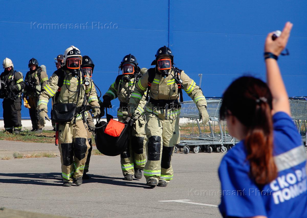 Тактико-специальные учения "Действия органов управления, сил и средств при возникновении пожара в торгово-развлекательном комплексе" ГУ МЧС России по Волгоградской области. Жанровая фотография.