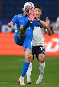 Фонбет - Кубок России по футболу 2024/25. Матч между командами "Динамо" (Москва) - "Крылья Советов" (Самара) на стадионе "ВТБ Арена". Игрок команды "Динамо" Лука Гагнидзе (слева) во время матча.