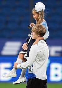 Фонбет - Кубок России по футболу 2024/25. Матч между командами "Динамо" (Москва) - "Крылья Советов" (Самара) на стадионе "ВТБ Арена". Девочка звонит в колокольчик перед началом матча.