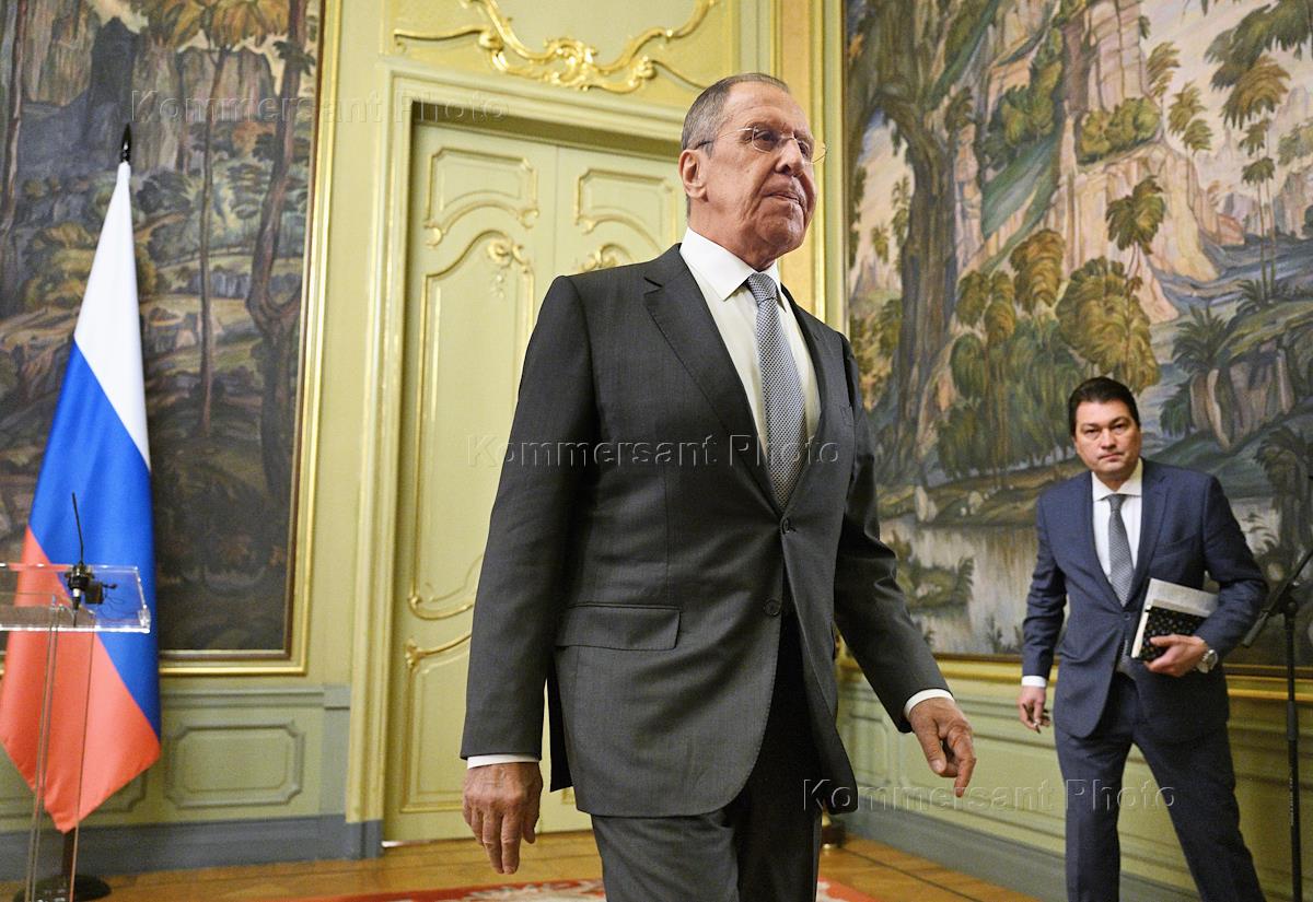 Переговоры министра иностранных дел России Сергея Лаврова и министра африканской интеграции и иностранных дел Республики Сенегал Ясин Фалл в Доме приемов МИД России. Министр иностранных дел России Сергей Лавров после окончания переговоров.