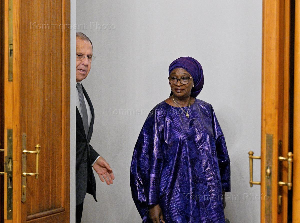 Negotiations between Russian Foreign Minister Sergei Lavrov and the Minister of African Integration and Foreign Affairs of the Republic of Senegal Yacine Fall at the Reception House of the Russian Foreign Ministry. Russian Foreign Minister Sergei Lavrov (right) and Minister of African Integration and Foreign Affairs of the Republic of Senegal Yacine Fall (left) before the start of negotiations.