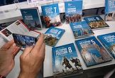 Пресс-конференция, посвященная презентации новой линейки единых учебников по истории для 5-9 классов и учреждений среднего профессионального образования, в пресс-центре ТАСС. Жанровая фотография. Учебники истории в редакции помощника президента России, председателя Российского военно-исторического общества Владимира Мединского, научного руководителя Института всеобщей истории РАН, академика РАН Александра Чубарьяна и ректора МГИМО Анатолия Торкунова.