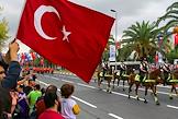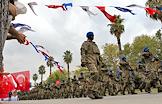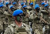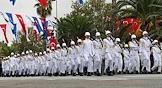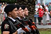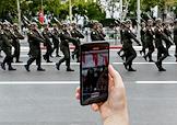 Военный парад в честь празднования 102-й годовщины Дня Победы. Жанровая фотография. Военнослужащие во время парада.