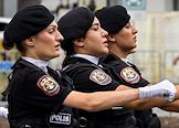 Военный парад в честь празднования 102-й годовщины Дня Победы. Жанровая фотография. Военнослужащие женщины во время парада.