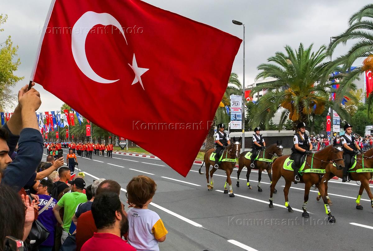 Военный парад в честь празднования 102-й годовщины Дня Победы. Жанровая фотография. Военнослужащие в военной форме разных эпох во время парада.